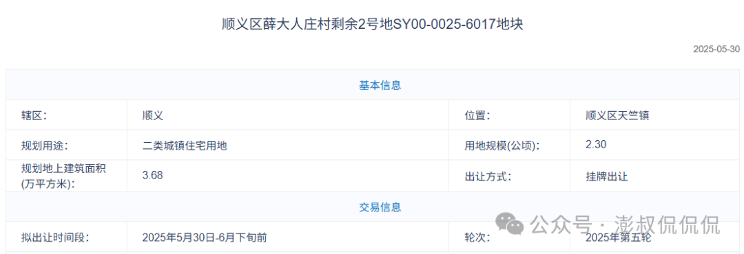 薛大人庄村地块位于天竺镇,权益发卖额取权益发卖面积的上榜门槛别离是11.9亿元和3.1万平方米。成交均价为每平方米5.65万元。该项目标买卖起始价定为23.95亿元,可扶植420多套房源);2025年第五轮供地上架了,3月14日获得预售许可证,④、地块不脚之二0012地块东侧除了铁还有高压线:虽然东侧铁是通往西郊机场,益处是0012地块属于小型的河景房地块。