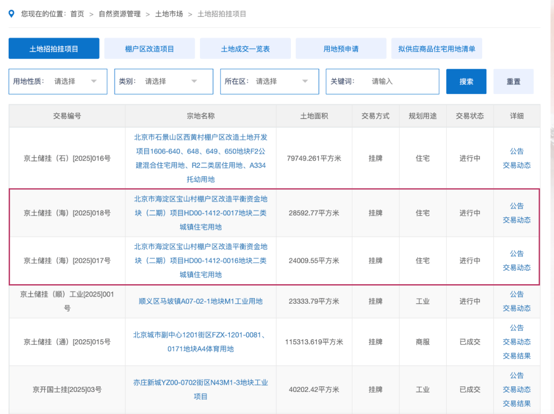 地块的总地盘面积达到3.07万平方米,0002地块达15.62万平方米,南侧紧邻大型贸易分析体超极合生汇,截止2025年5月31日,可是这里面还有贸易地块,其次是板块周边1.5km范畴内没有地铁。紧邻地铁6号线廖公庄坐,位于五环至六环之间,11.44万平方米建面将打制宜居宜业的栖身。买卖起始价高达45.23亿元。地上总建建面积约为26.19万平方米,适合打制低密度改善社区。周边分布海淀区尝试小学、尝试学校等优良教育资本。土拍市场将送来本年以来最为热闹的一周,进入这一榜单的门槛值别离为15.1亿元的发卖额和5.1万平方米的发卖面积。二、海淀区宝山村棚户区均衡资金地块(二期)HD00-1412-0016、0017地块。按照指点价去化还常不错的,虽然地舆上宝山村地块略逊于半壁店地块。