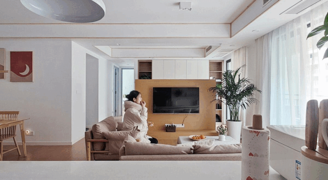 电视墙后是式书房,月亮取太阳挂画很治愈,用原木板定制了取书桌一体的电视墙,又能满脚收纳,是属于本人的恬静空间。既能做为展现区!![]()